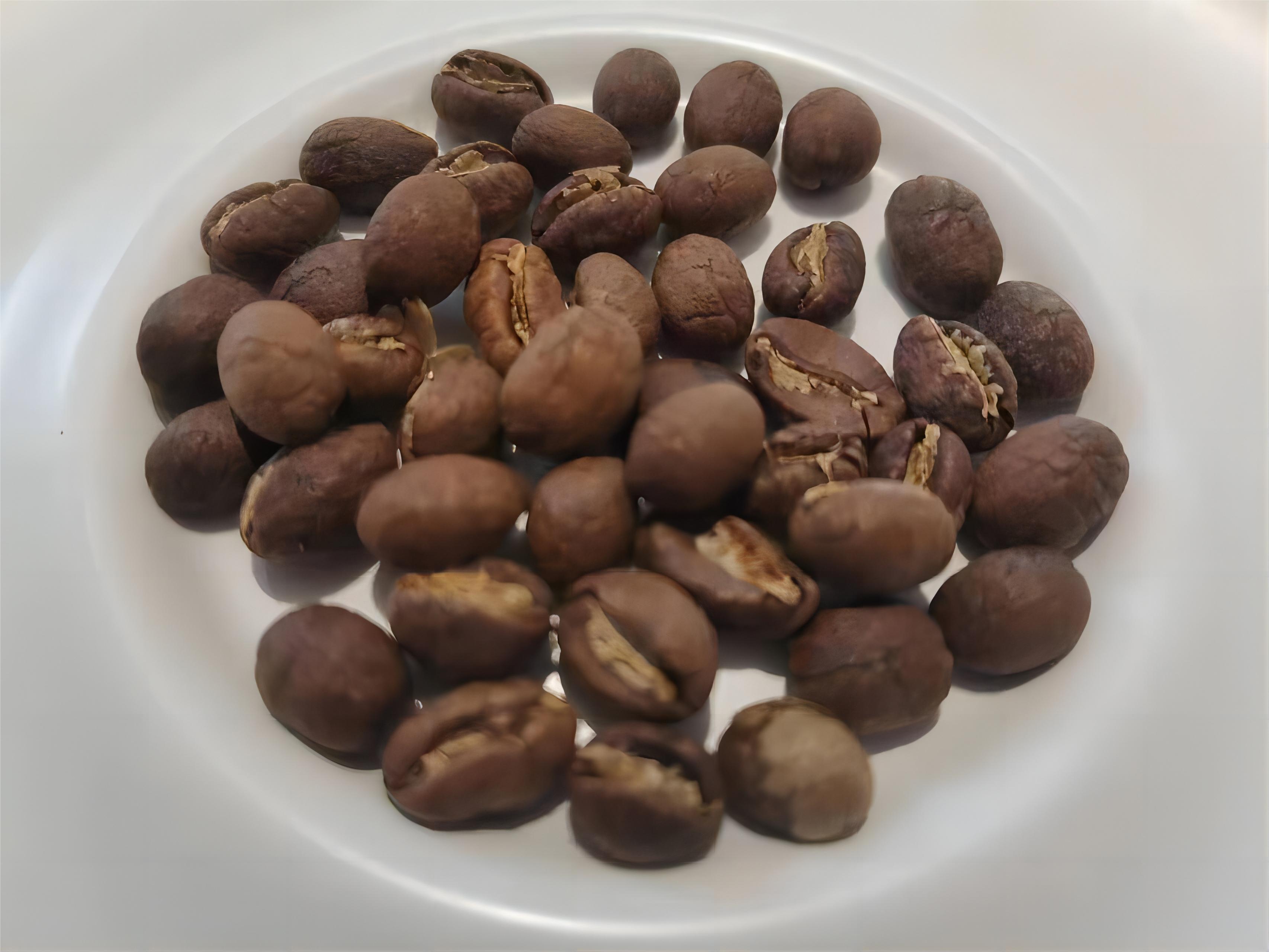 外观上呈现肉桂色,臭青味已除,香味尚可,酸度强,咖啡味淡,市面上较少贩卖。按时间来说约在“一爆”中期,如图2-1-11所示。