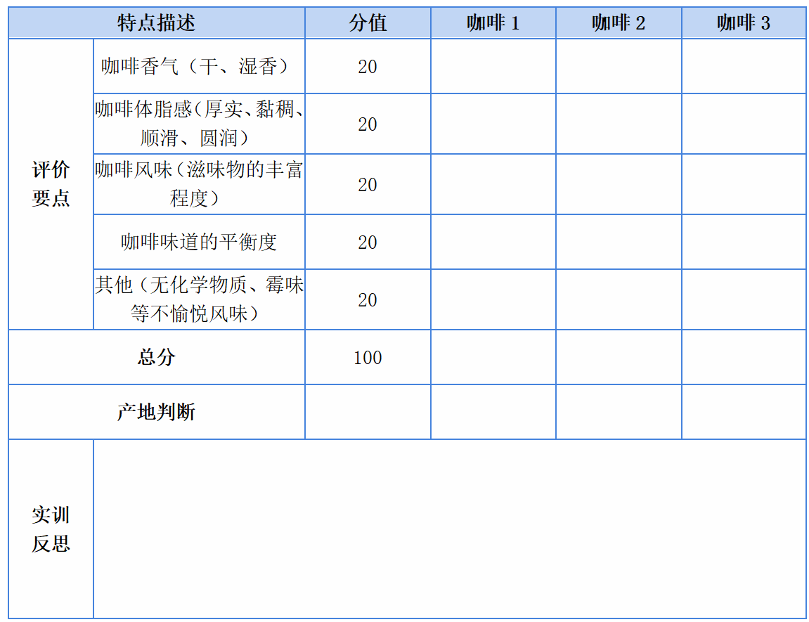 (2)小组准备:四人一组(一名咖啡师、三名品鉴员)。