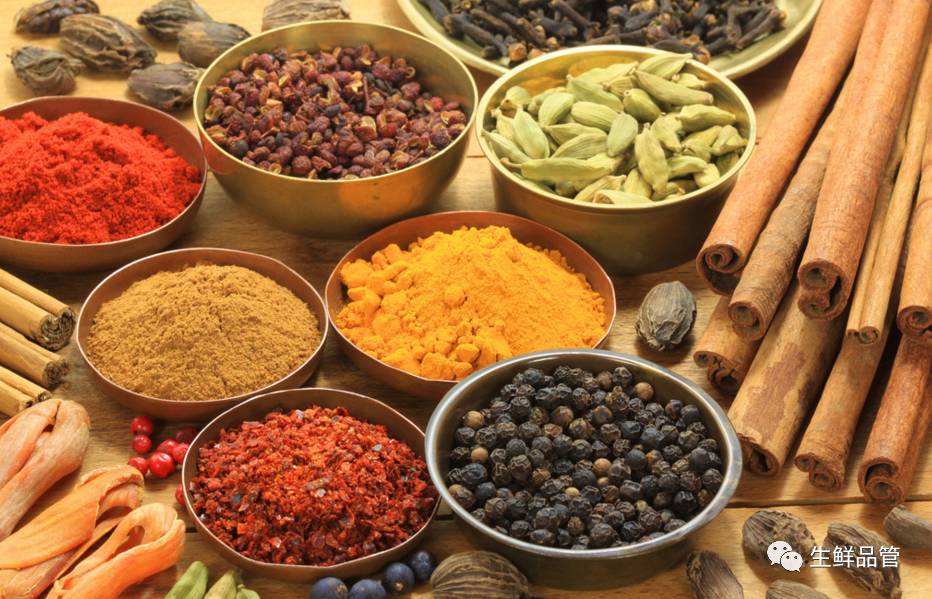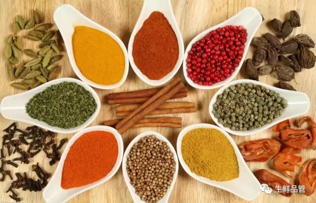 香辛料的种类很多,大茴香、胡椒、花椒、肉桂、丁香、辣椒、姜、大蒜等体现各种风味的香辛料: