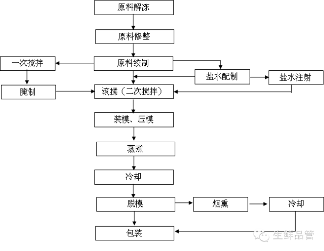 低温肉制品是指在常压下蒸煮、熏烤,产品在加工时中心温度在70~80℃,成品的运输、贮藏、销售原则上要求在低温0~4℃条件下进行的一类产品。