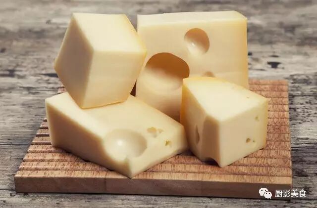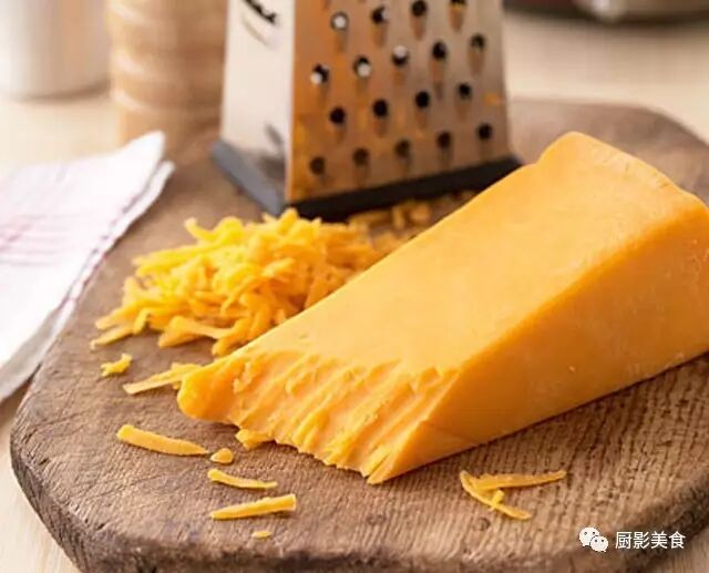 (4)硬质奶酪(Hard cheese):一种以上经过挤压的奶酪团,经融化后加入牛奶、奶油或黄油后制成。这也是我们最常见的一种奶酪,