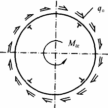 扭矩Mt作用时,对于闭剖面的周边段,有常剪流q0(Mt/(2πR2))来平衡;对于有开口的剖面,其平衡是由未开口的两侧壁板剪流qˊ形成的力偶来平衡。qˊ在左右侧壁上大小相同,方向相反。