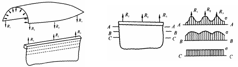 在气密载荷作用下,舱盖通过滑轮把载荷传给机身口框上的滑轨。所以由舱盖传来的集中力经过许多铆钉,由滑轨传至口框再到机身蒙皮,应力由不均匀逐渐变得均匀。