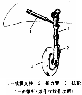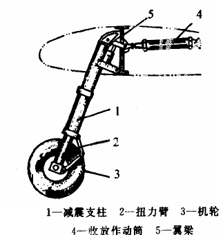 减震器的用途是吸收和消耗飞机着陆时的撞击能量;扭力臂是不让机轮和支柱内筒一起相对于支柱外筒转动;机轮上装有灵活的具有防抱死功能的刹车装置,以便缩短着陆滑跑距离,增加飞机在地面上的机动性。