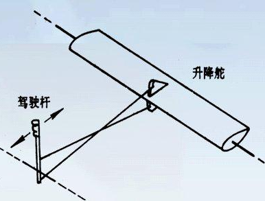 飞机在飞行过程中,操作升降舵,飞机就会绕着横轴转动,产生俯仰运动。飞行员向后拉驾驶杆,经传动机构传动,升降舵便向上偏转,这时水平尾翼上的向下附加升力就产生使飞机抬头的力矩,使机头上仰;向前推驾驶杆,则升降舵向下偏转,使机头下俯。