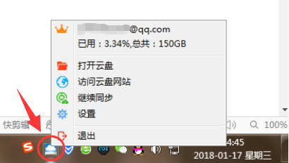 在电脑屏幕右下角,右击云盘的小图标,选择“打开云盘”。
