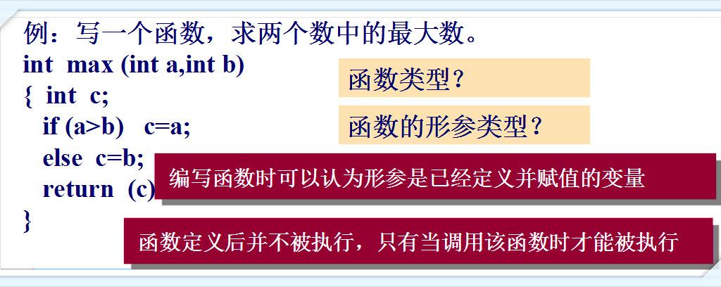 3)对于不带返回值的函数,在定义时在函数名前加void(void 称为空类型),此时在函数体中不能出现return语句。