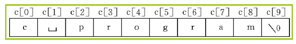 例如: char c[10]={'c', ' ', 'p', 'r', 'o', 'g', 'r', 'a', 'm'};
