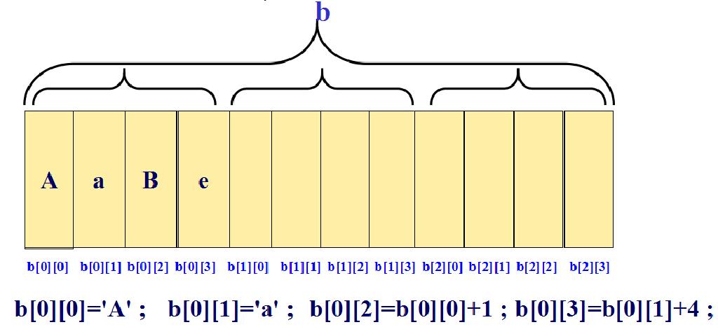 例如:char a[3][4 ]={ '1' ,'2' ,'3' , '4','A' ,'B ', 'C' ,'D' ,'a' ,' b','c','d '} ;
