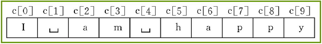 例如: char c[10]={'I', ' ','a', 'm', ' ', 'h', 'a', 'p', 'p', 'y'};