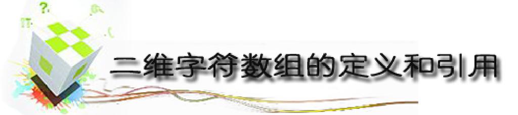 例如:char a[3][4]={ {' 1' ,' 2' ,' 3' , '4'} ,{'A' ,'B ', ' C' ,'D'} ,