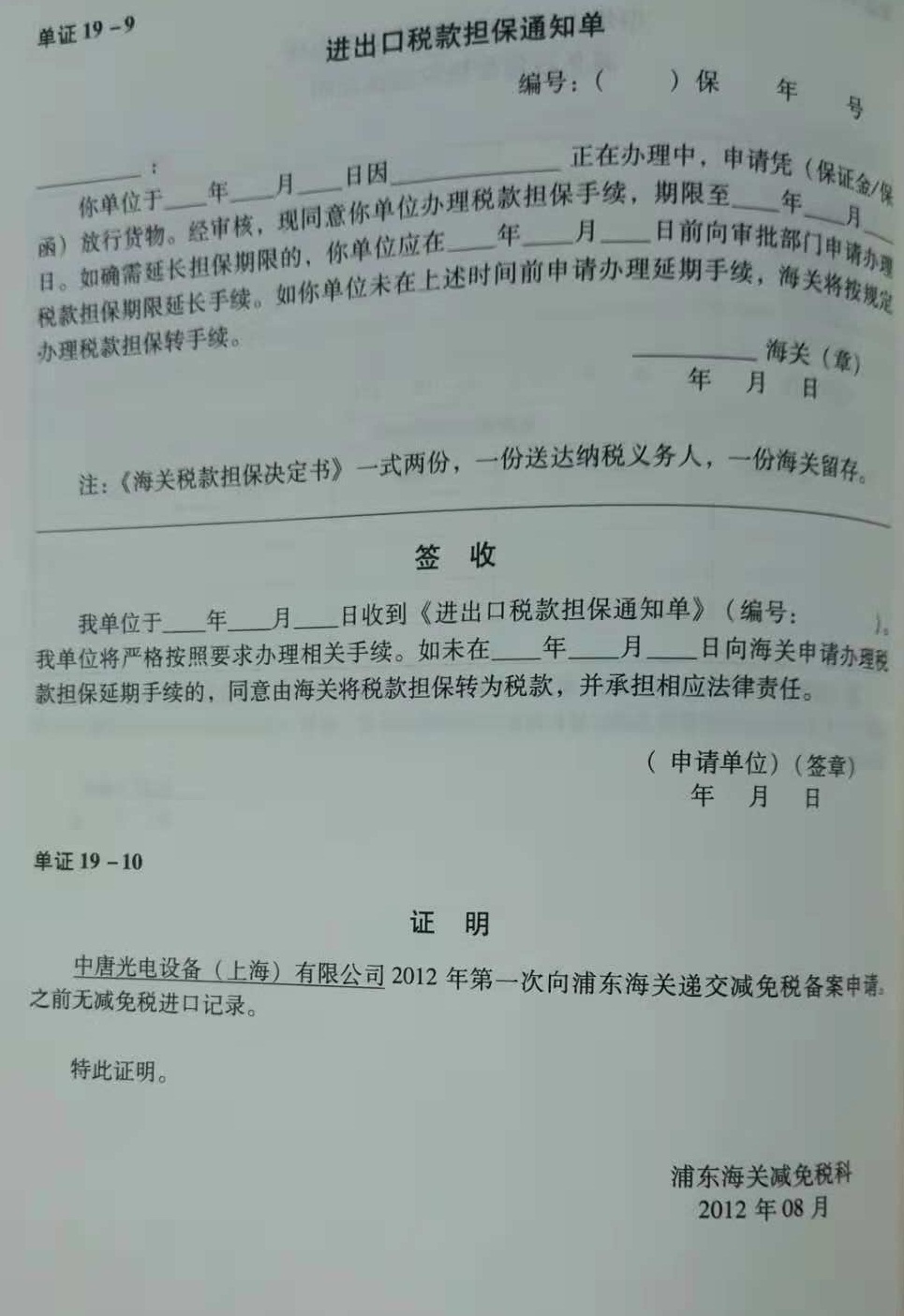 第二步:申领“进出口货物征免税证明”