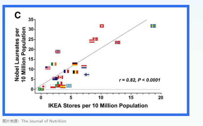这两个研究的漏洞就是强行建立因果联系。有文章就进行了反驳(DOI:10.3945/jn.113.174813),用的是反证法,发现宜家的数量也和诺贝尔奖得主的比例有着显著的正相关性。