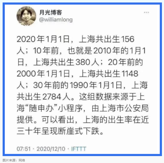 猫腻就在这位网络博主隐藏了一个关键信息——这是上海市户籍人员的统计数据,并不是生在上海的人口数统计。上海作为一个移民城市,户籍人口一直在增长,所以这里的数据中有很多是出生后移民来沪的。