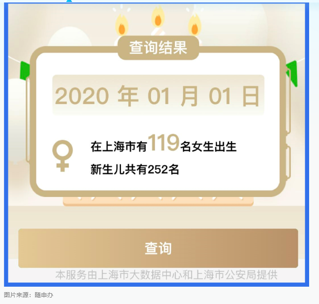 课代表在 2021 年 2 月 7 日也在这个小程序上查了一下,上海市户籍人口中共有 252 人在 2020 年 1 月 1 日这天出生,比上面的 156 人多了不少,下次查可能又多了。