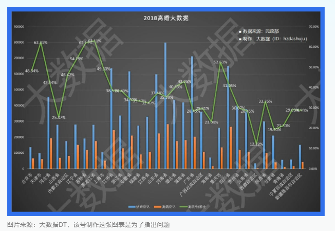 2019 年的时候,一系列主题为“北京离婚率 48.3% ”的文章刷爆了朋友圈,渲染中国的婚姻制度将要消亡的氛围,同时还配了看起来很全很官方的数据。