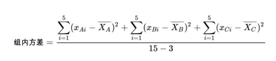 将各个实验组的方差加起来就得到了组内方差(其中也多了些常数,暂时可以不用管):