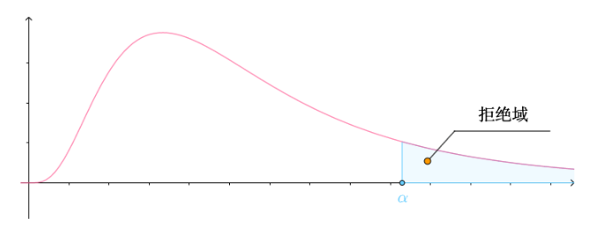 的值足够大,大到落入F分布的右边区域(也称为拒绝域)时,就有把握说三组是不同的: