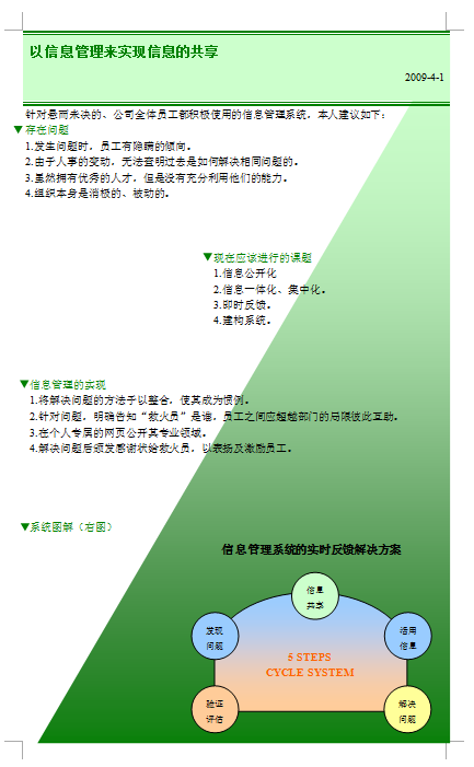 公司对信息管理系统提出了信息共享计划,职员小陈对此想设计制作一份图示型企划书,那么如何设计制作呢?