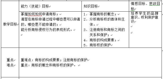 通过学生完成的任务书,总结商标法律制度,培养学生品牌意识和维权意识。