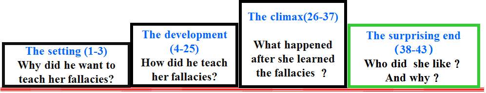 “Love Is a Fallacy” is a story mainly about the campus love among Dobie, Polly and Petey(Dobie物色了一个拥有作为一个成功律师的妻子潜质的女孩Polly,与室友Petey