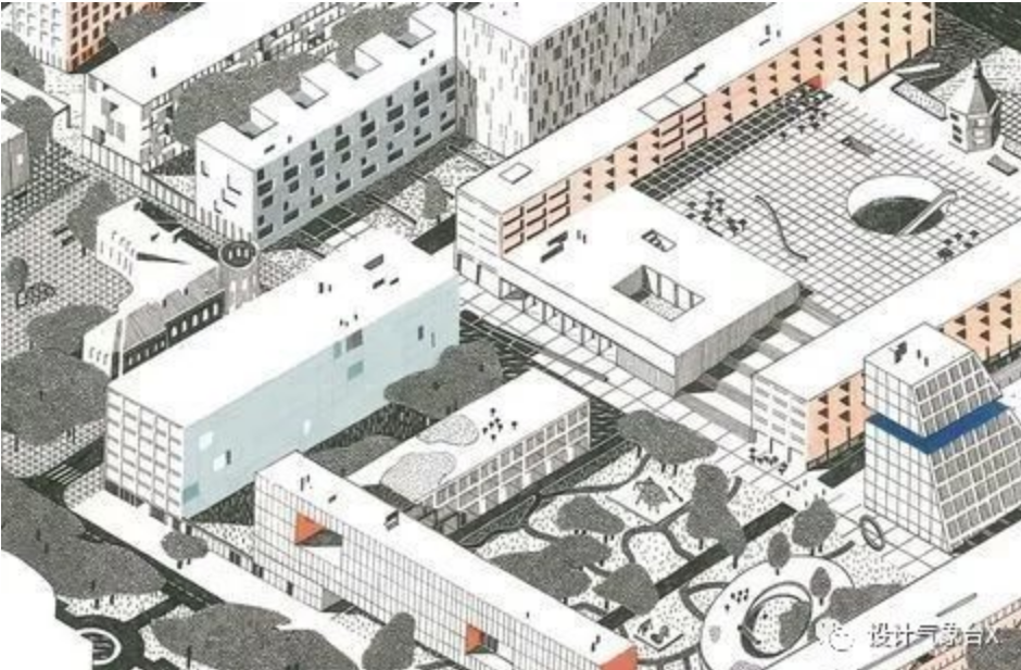 轴测图自16世纪正式运用于建筑设计以作防建图示以来,演进脉络清晰可查,它最终表征了20世纪后建筑界广泛使用的构筑范式:可以清晰、有效、精确地满足人们在二维平面上想像三维空间的欲望。可谓处理二维、三维之间张力的最佳方法。轴测图以理性建构连续空间并在视觉上将之有效传播而闻名于科学世界。同时,它和人们的认知系统互相形塑,并溢出其原边界,进入美学领域,在美学上斩获自身的合法性。袁欣亚与卢朗在其文章《建筑轴测图的表现特征探析》中将轴测图视作概念和建成空间之间的媒介,“不是被动静默的或单纯透明的,而是自主能动地对其所传达的建筑概念进行表达,有时甚至可以激发和推动新的设计构思”。