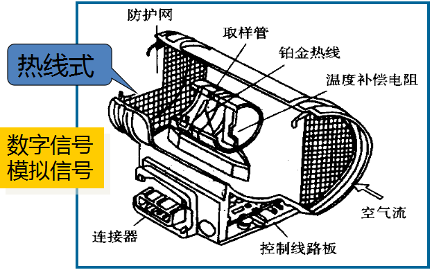 作用:检测进气流量,决定基本喷油量和点火提前角。