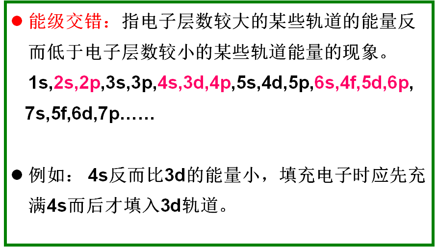 -对于4、5、6、7能级组,在一个能级中包含不同电子层的能级现象称为能级交错