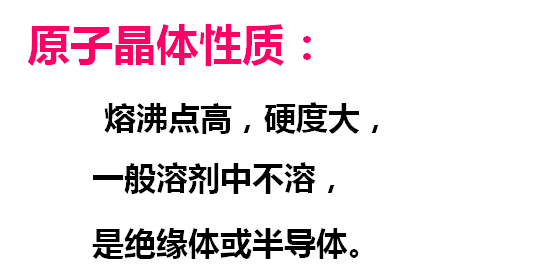 (1)某些非金属单质:金刚石(C)、硅(Si)、锗(Ge)(2)某些非金属化合物:SiC、BN等
