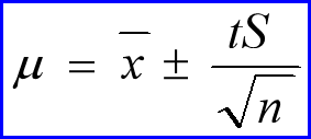 置信区间 :在一定置信度下,以测定结果为中心的、包括总体平均值μ在内的可靠性范围。