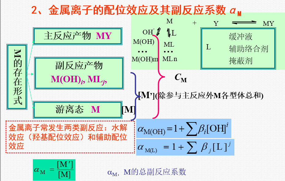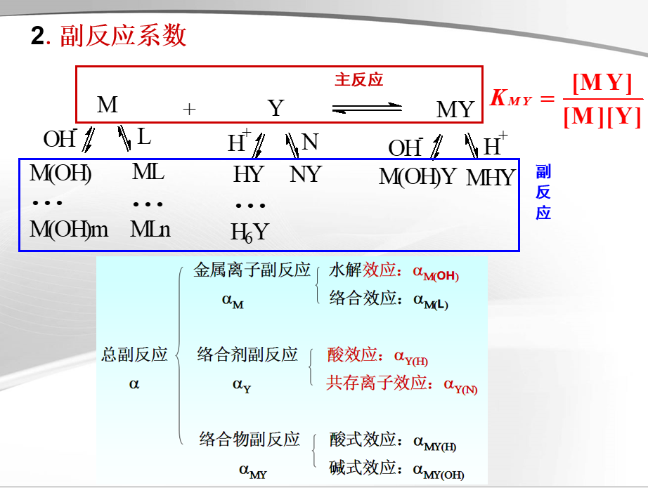 M + Y MY(主反应,省去电荷)