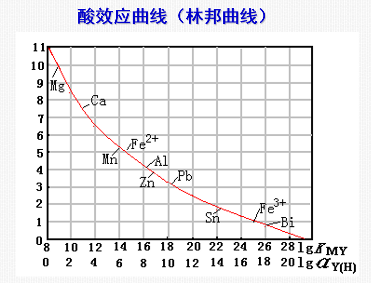 将各种金属离子的lgKMY与其最小pH绘成曲线,称为EDTA的酸效应曲线或林邦曲线。