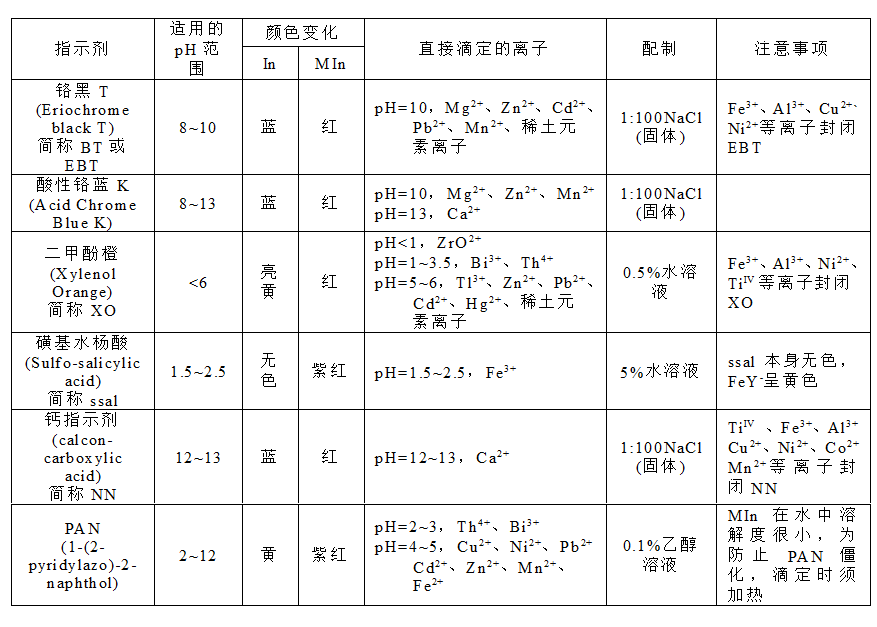 常见的金属指示剂(见附表)