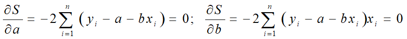 假设求得: a;b 代入 y’i =a + b xi 得直线方程。