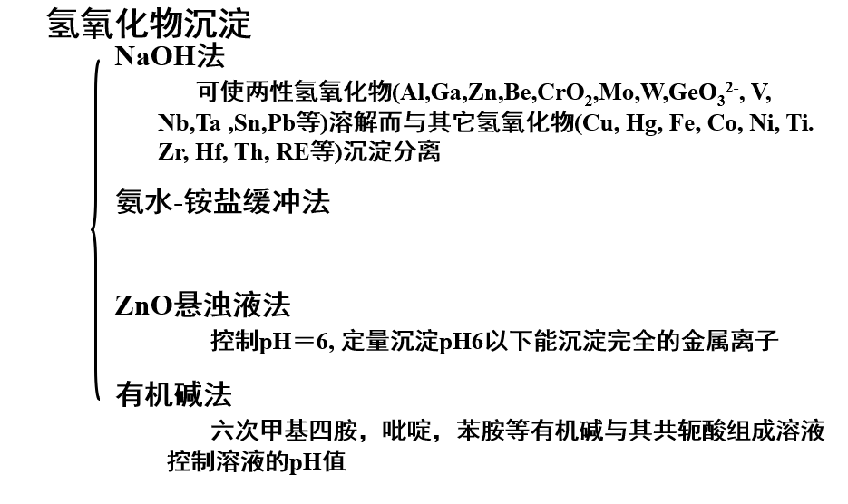 微酸中沉淀Al,Zn,Co,Mn,Be,Th,Ga,In,Tl等。