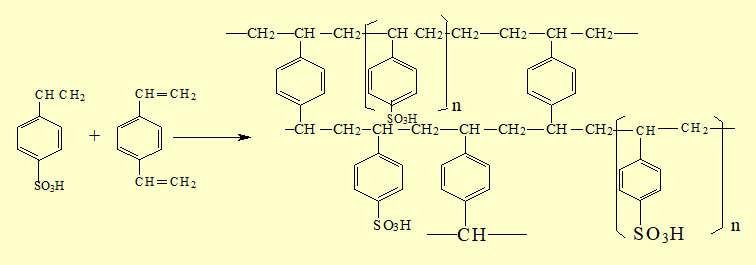 高分子聚合物,具有网状结构,稳定性好。在网状结构的骨架上连接有活性基团,如-SO3H, -COOH,-N(CH3)3Cl等,它们可以与溶液中的离子进行交换。