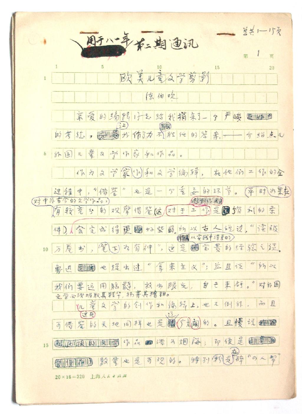 为了孩子们有良好的读物,……这,正如小学生的教科书,要求第一流的编辑,第一流的作品,第一流的绘画,第一流的纸张,第一流的印刷,出版第一流的读物,这样,我们的下一代有福了。