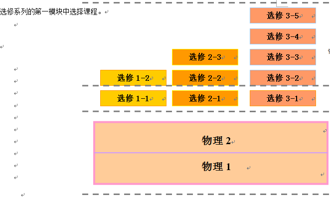 ●在3个系列12个模块中,其中物理1、物理2为共同必修模块,其余皆为选修模块。