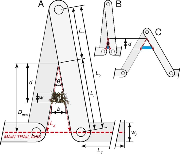 发表在美国国家科学院院刊上的一项研究表明,在中美洲,兵蚁行军跨过热带雨林的地面裂缝时会利用它们自己的身体建造复杂的桥,并根据成本收益平衡问题来调节它们搭建桥梁的效率。科学家们已经找出了它们搭桥的方法。研究人员们在巴拿马巴洛科罗拉多岛追踪兵蚁,并制作了一个Y形平台模仿地面裂缝,同时用延时拍摄拍下蚂蚁穿过平台时的视频。