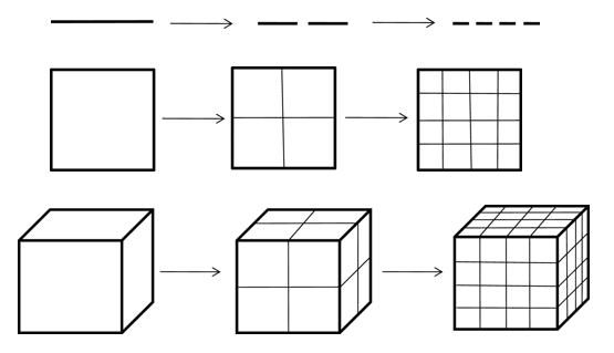 1维:每一级都是由M个尺寸是1/M的上一级的复制品组成。