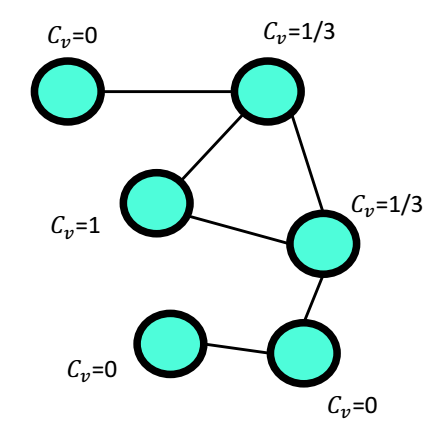 对于节点v,设其聚集系数为其邻居中互相之间又是朋友占邻居总数的比例。