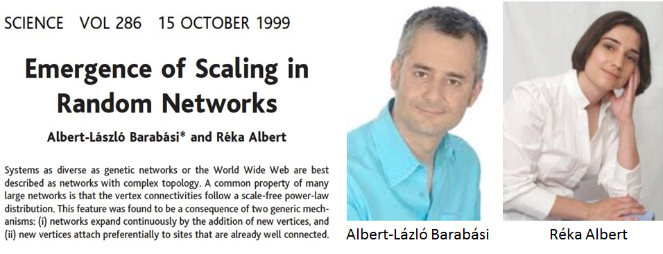 Barabási与Albert针对复杂网络中普遍存在的幂律分布现象,提出了网络动态演化的BA模型,他们解释,成长性和择优连接性是无标度网络度分布呈现幂律的两个最根本的原因。所谓成长性是指网络节点数的增加,像Internet中自治系统或路由器的添加,以及WWW中网站或网页的增加等。择优连接性是指新加入的节点总是优先选择与度值较高的节点相连,比如,新网站总是优先选择人们经常访问的网站作为超链接。随着时间的演进,网络会逐渐呈现出一种“富者愈富,贫者愈贫”的现象。社会学家所说的“马太效应”,《新约》圣经所说的“凡有的,还要加给他,叫他有余”,同择优连接也有某种相通之处。