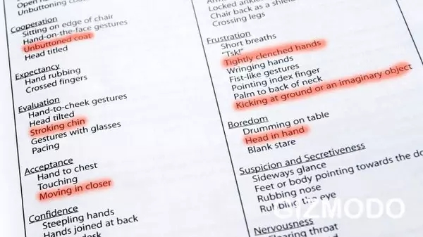 手册里还包括了如何读懂顾客的肢体语言和表情