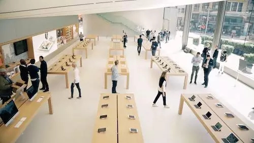 上面说到了苹果店独特的外立面设计和精心的选址布局。这次来说说苹果店的内部设计,以及秘密流出的员工培训吧!