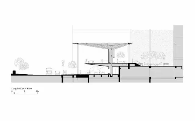 这家店和广场在标志性的东方明珠对面,隔着繁忙的十字路口。在概念设计时,项目团队了解政府为2010年上海世博,要计划建设一个大型的高架环形走道改善行人出行。于是我们修改了广场的设计,以创造一个大区域性级别的地标性建筑。在设计过程中,我们的团队和开发商定期与公共机构进行协调地铁系统,高架行人道和公共街景的规划动线。