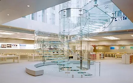 苹果的旗舰店不少是由Bohlin Cywinski Jackson这家公司设计的, 每个地方的旗舰店设计都与当地的周边环境和文化特色完美的结合在了一起。