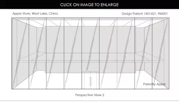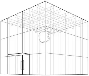 ”The mark consists of the distinctive design and layout of a retail store comprised of a cube-shaped building constructed almost exclusively of transparent glass, with transparent glass walls and roof, transparent glass double doors and a transparent glass awning and featuring a pendant of an apple with a bite removed suspended from the ceiling.”