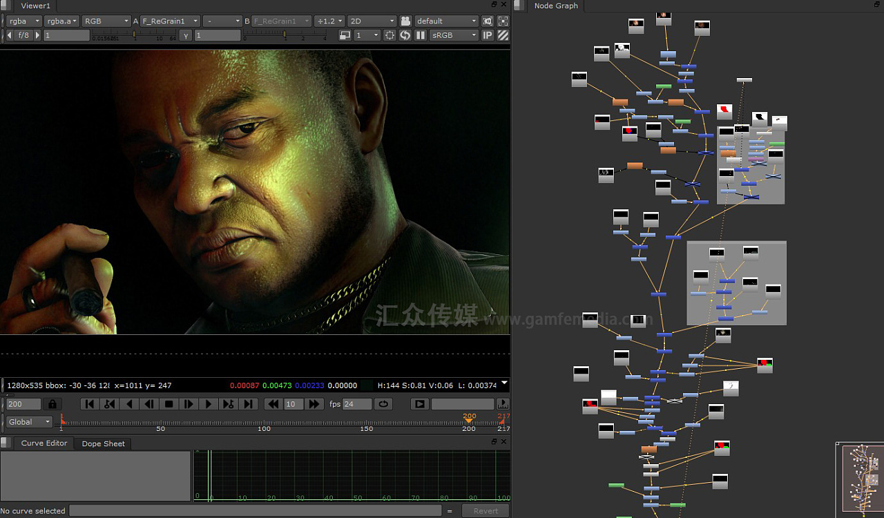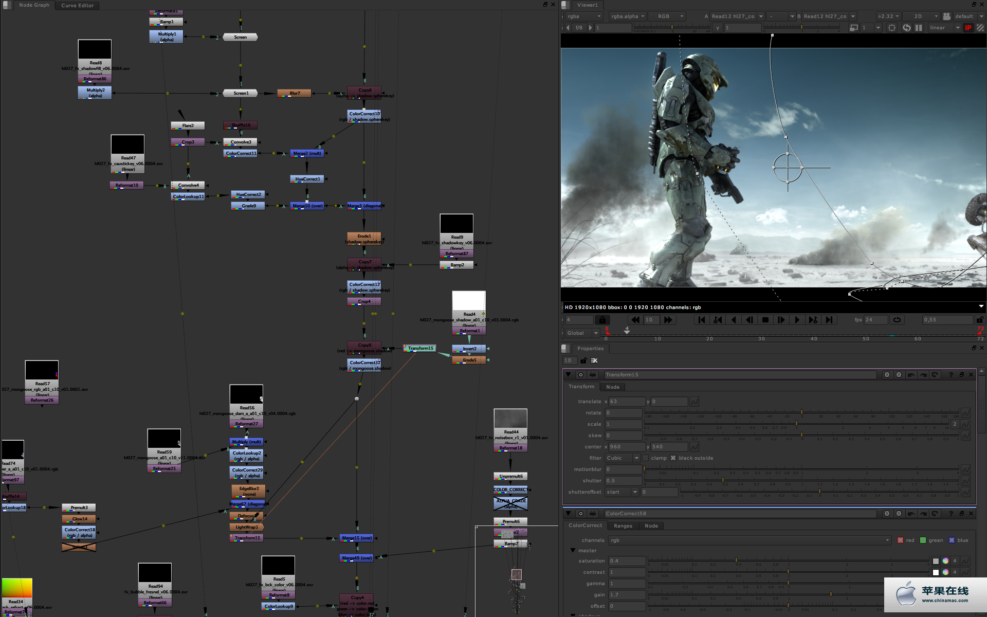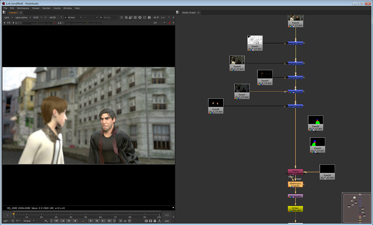2、全景拍摄的虚拟场景需要使用AE、Nuke等合成软件进行后期的合成。