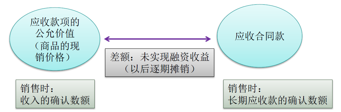 应收合同款与其公允价值之间的差额,在商品销售时表现为未实现融资收益,之后在合同期内摊销。