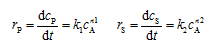 产物P、S的生成速率为:
